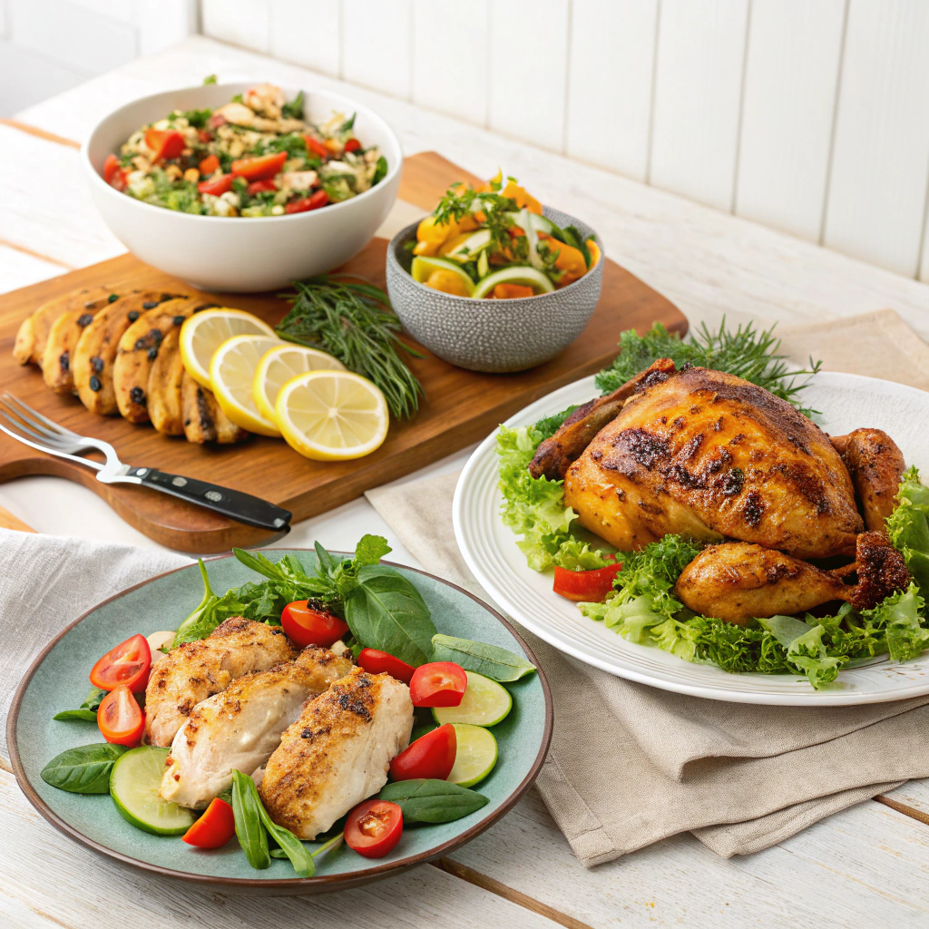- Family-Style Platter: Arrange sliced chicken on a large serving board surrounded by rainbow vegetables and lemon wedges