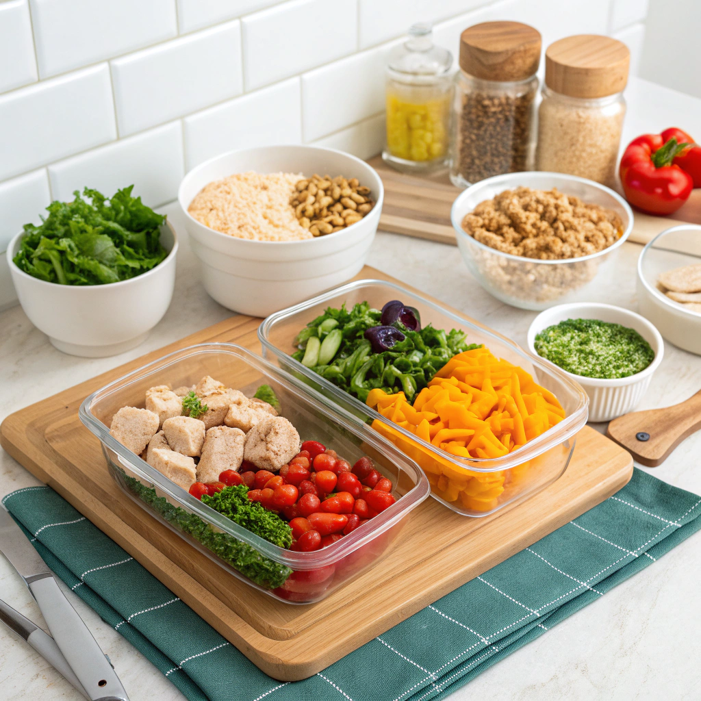 Label each container with contents and date prepared. Proper labeling prevents food waste and helps track freshness throughout the week.